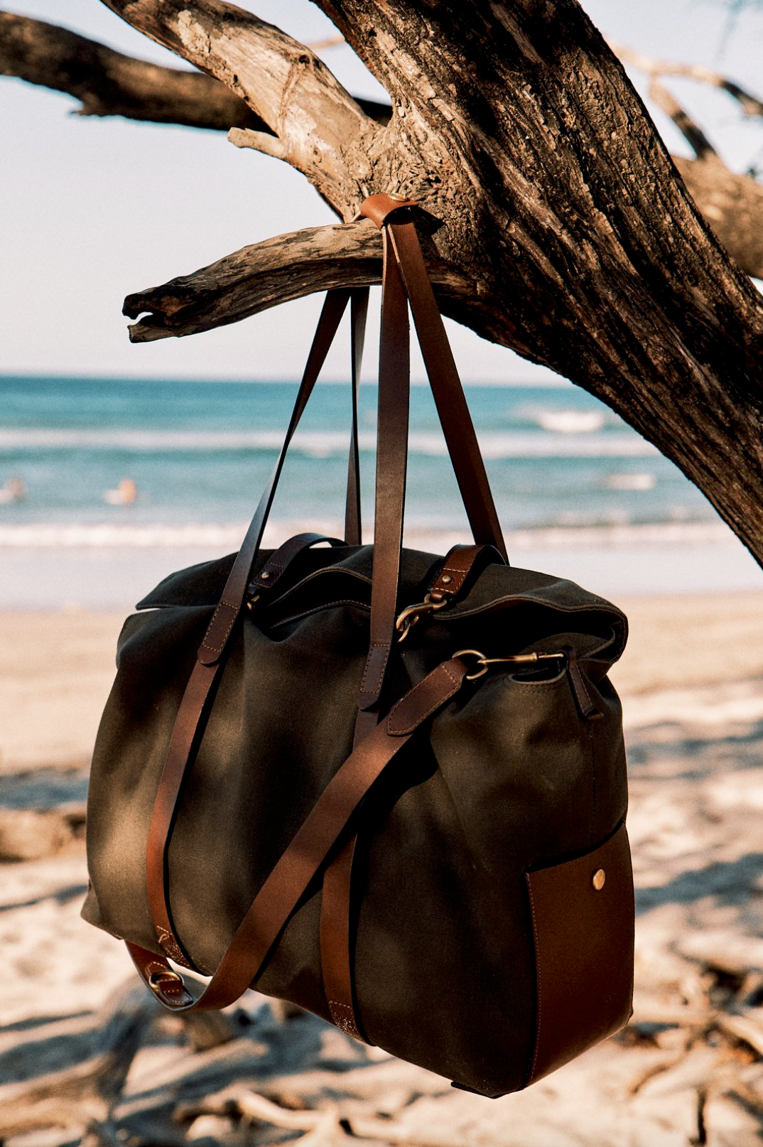 Cotton & nylon canvas / 40.000 Martindale Full-grain bridle leather trim Solid brass accessories