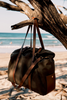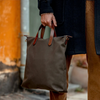 Use with the flaps closed as a travel bag, or bend flaps down for a large, open city tote bag.  A full-grain leather pocket on each gusset adds extra durability to the bottom corners. Features an easy accessible leather pocket on the one flap, a large inside pocket for magazines and opposite two smaller slide down pockets for all the extras. Two additional inside pockets on each gusset ensure enough room for all your needs. A leather strap attached by hooks to the top gusset provides stable bag closure when the flaps are folded, and can also be used as shoulder strap.