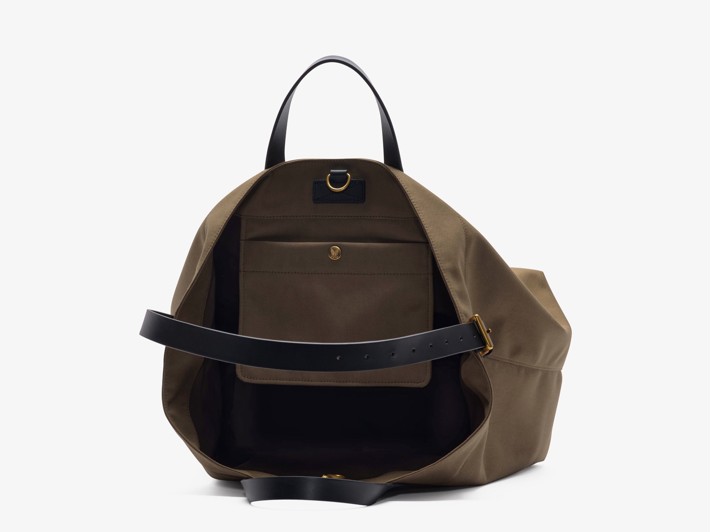 With an open-top silhouette, it invites spontaneity, offering space for both the essentials and the unexpected. A single belt strap, running from gusset to gusset, provides versatility, serving as a soft closure or a comfortable shoulder carry when needed. Inside, two discreet hanging pockets crafted from the main fabric - one zippered, one buttoned - keep small belongings close at hand. Soft-foamed bottom provides added stability. Truly a companion for life.
