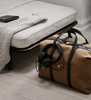 Cotton & nylon canvas / 40.000 Martindale Full-grain bridle leather trim Solid brass accessories