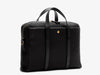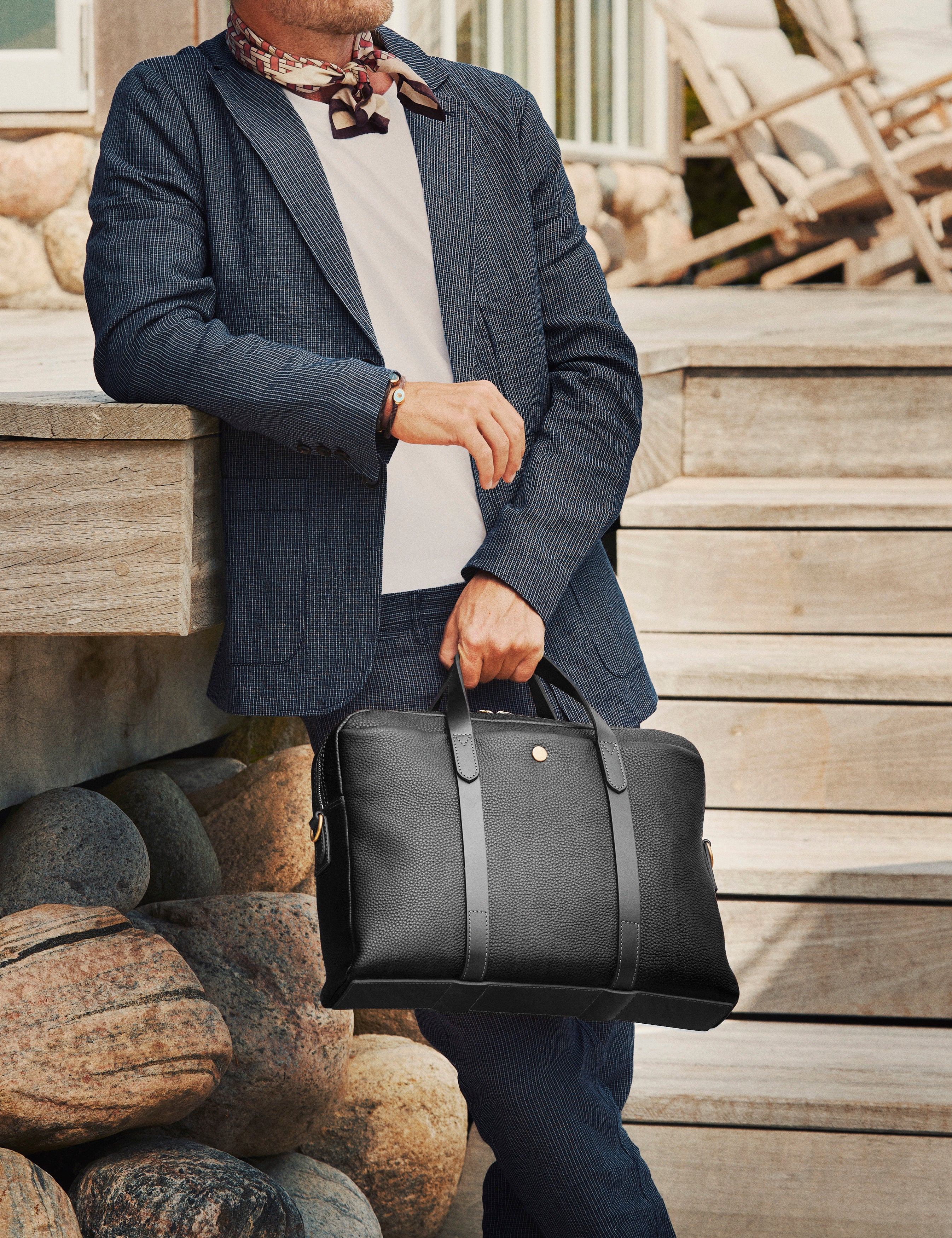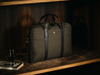 A backside trolley-fastening solution in bridle leather completes a briefcase that will stylishly accompany you wherever work duties may take you.