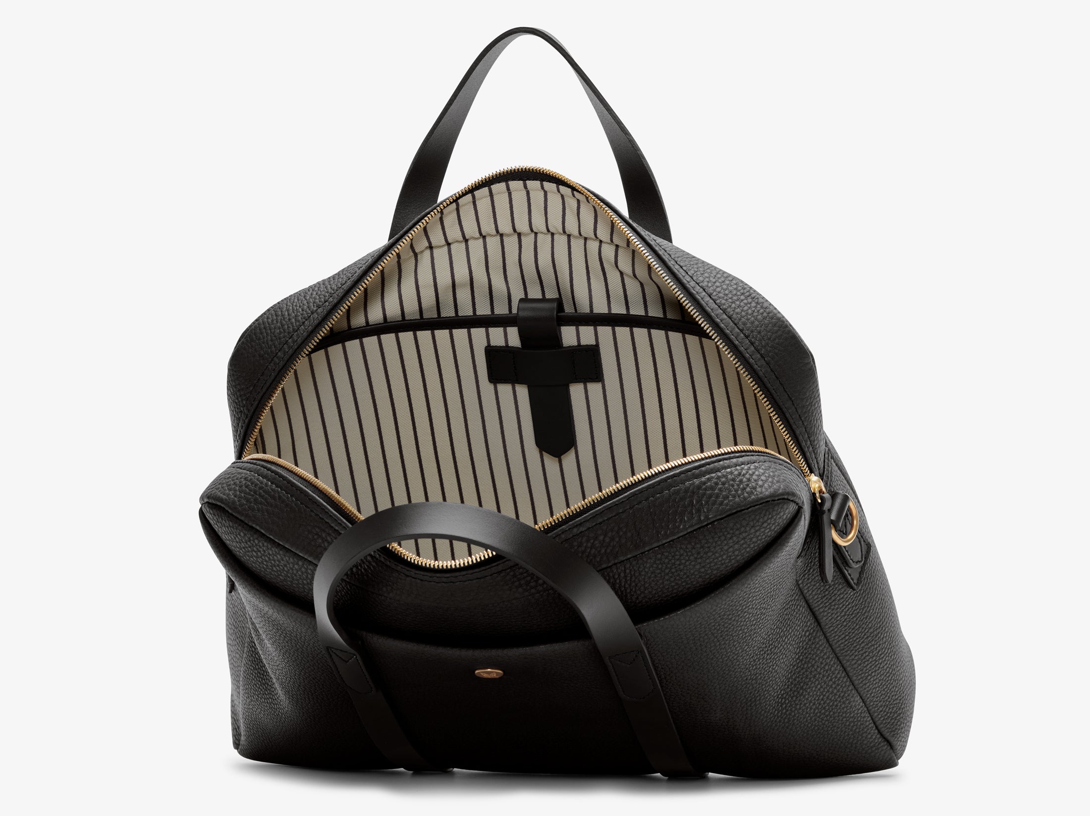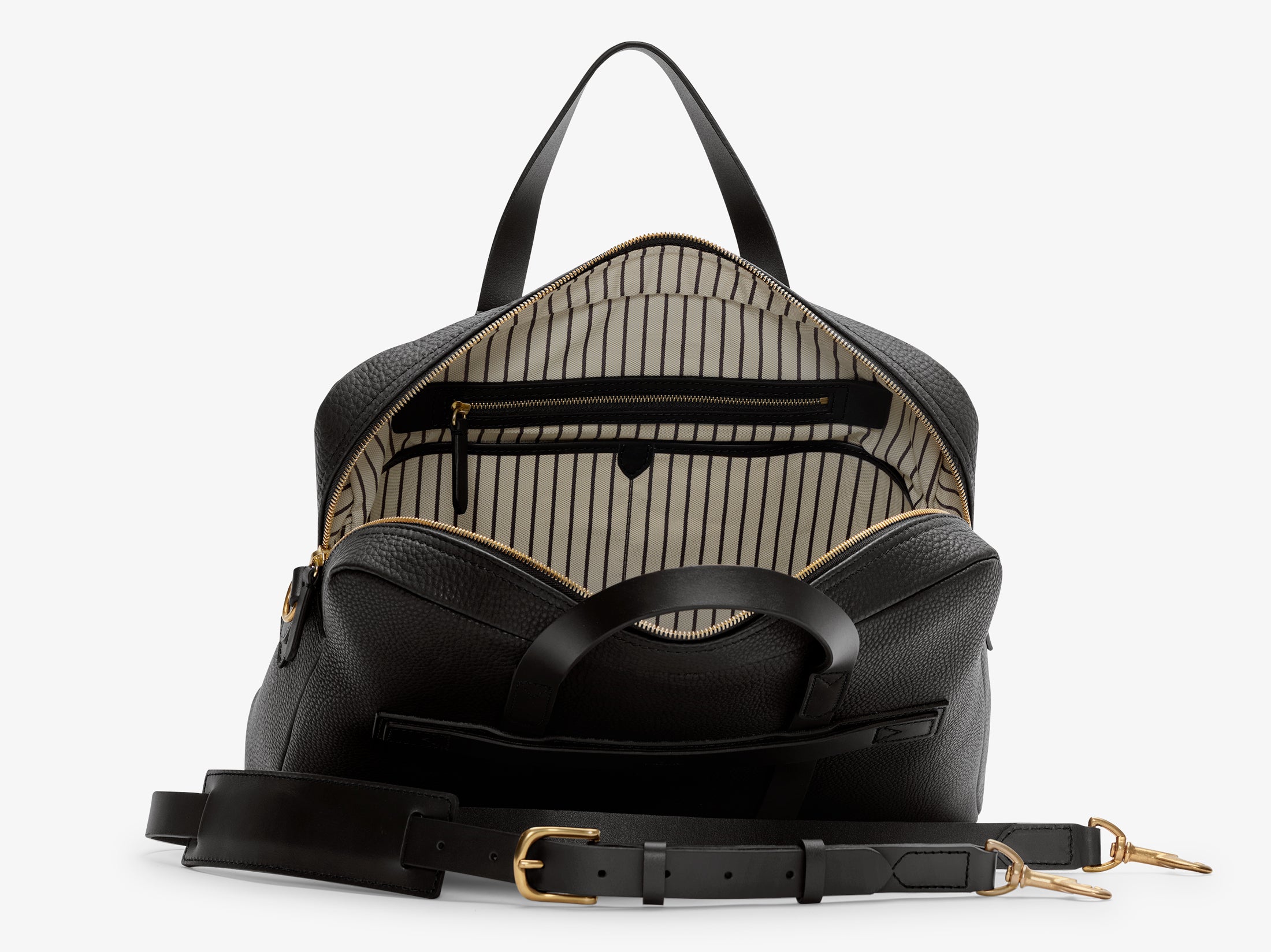 Structured full-grain leather Full-grain bridle leather trim Solid brass accessories