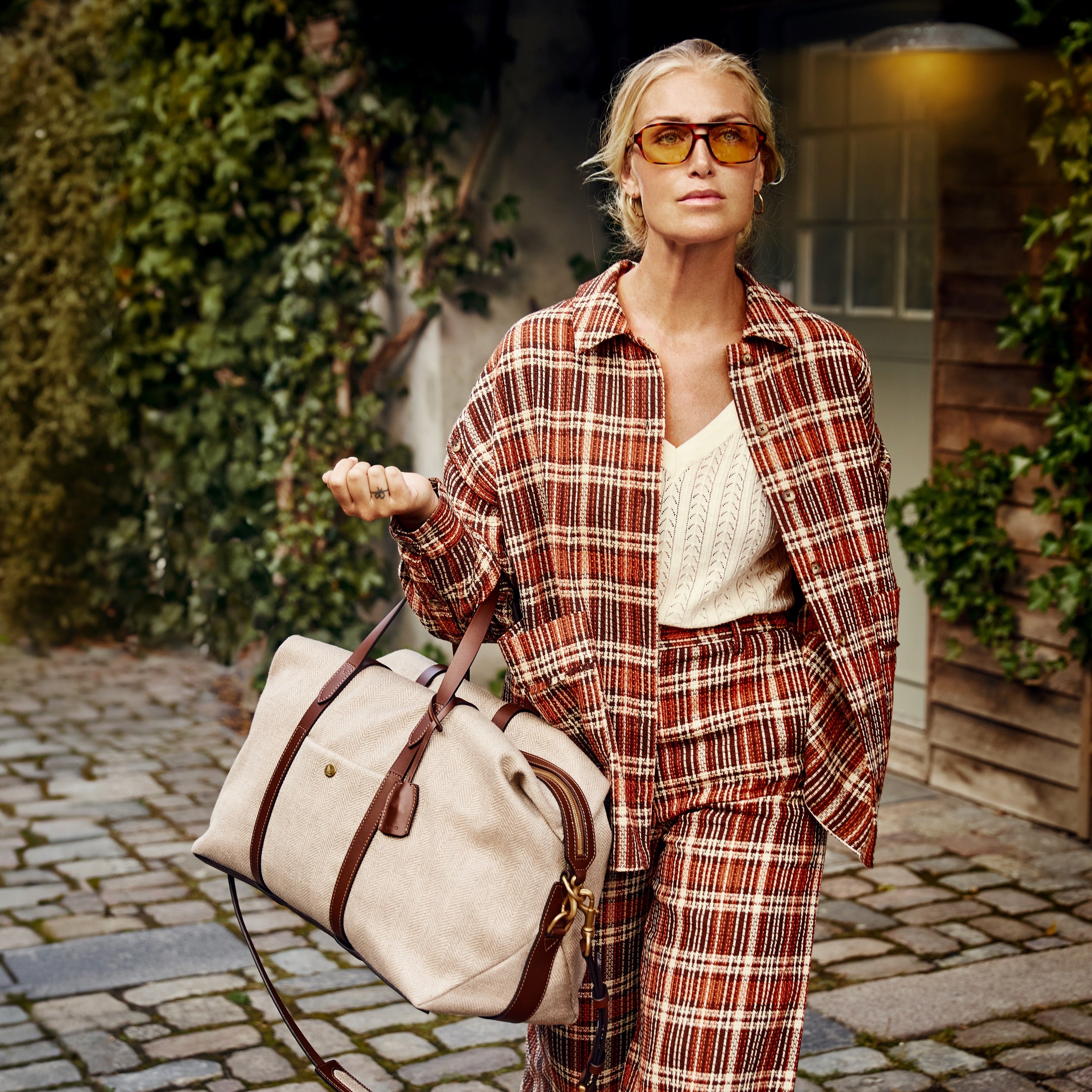 Stylish, mid-sized weekender Complies w. cabin size restrictions Adjustable & detachable shoulder strap
