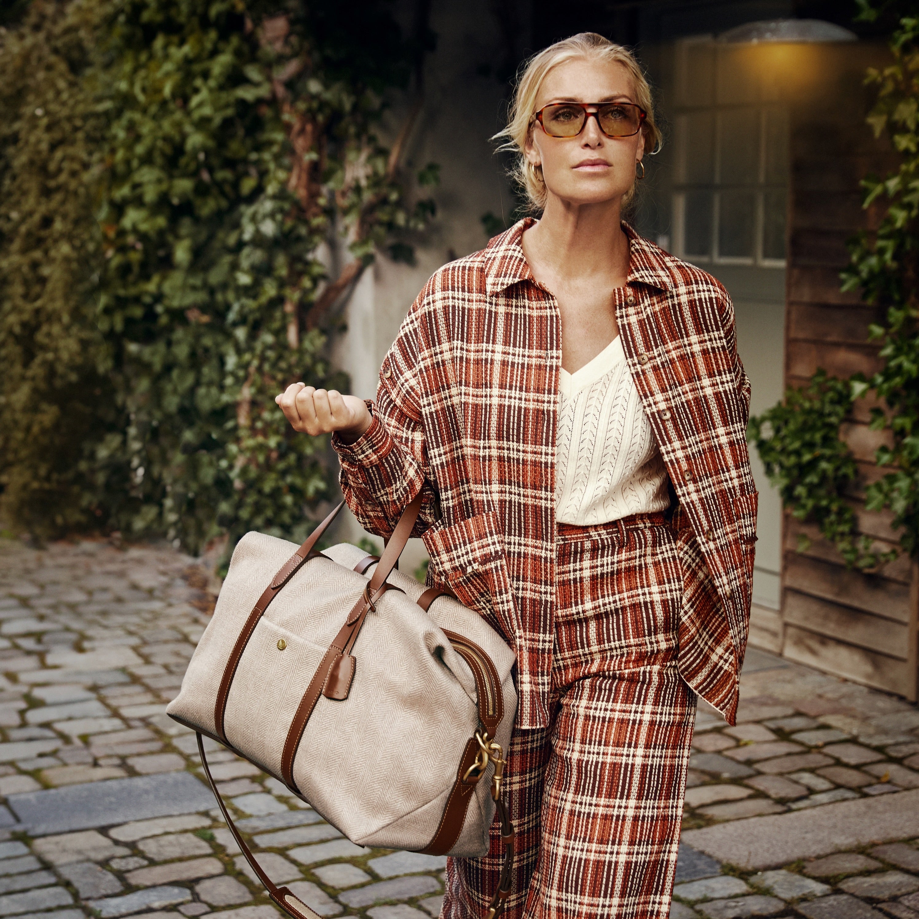 Stylish, mid-sized weekender Complies w. cabin size restrictions Adjustable & detachable shoulder strap