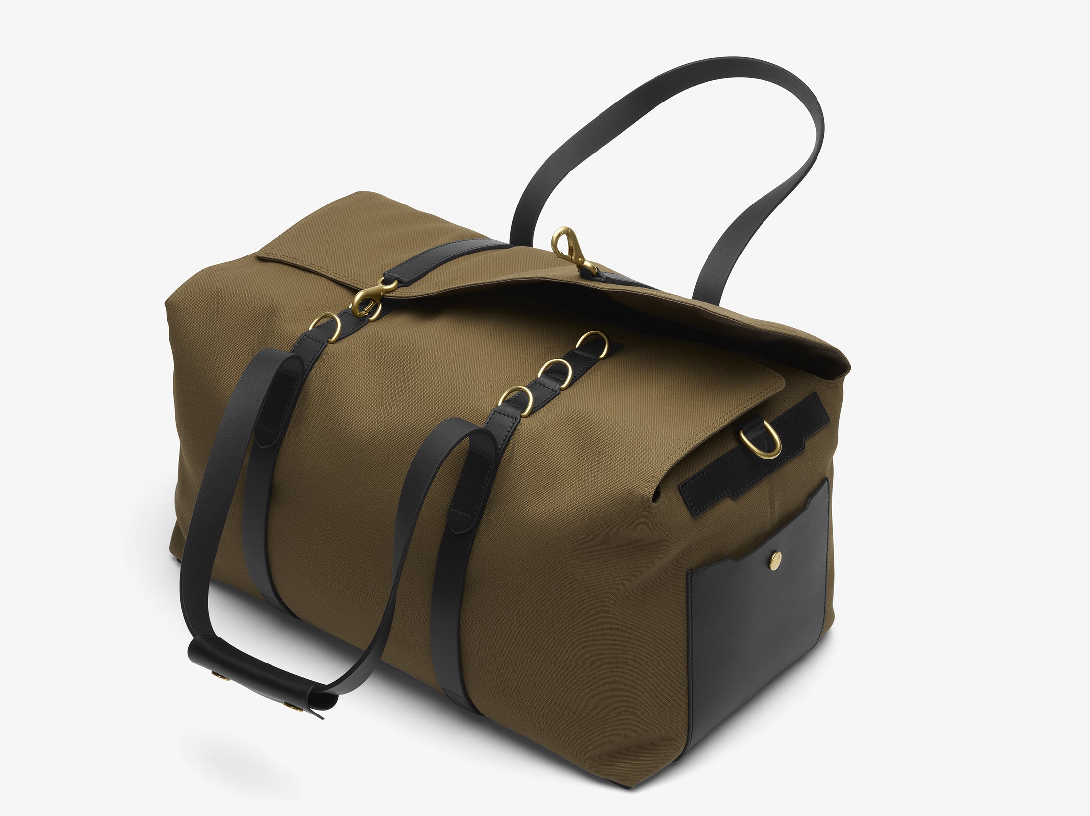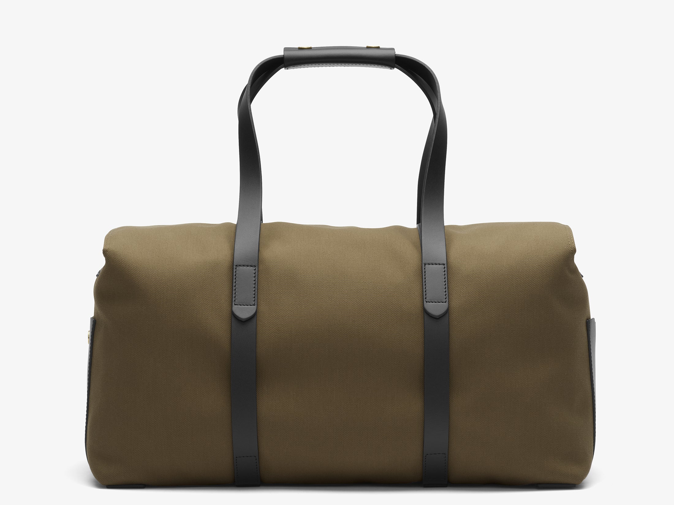 Set on a cotton warp and nylon weft, our khaki canvas offers the better of two worlds: the tactility of the cotton and the durability of the nylon. Add to that a soft backing, which gives the fabric the perfect weight to ensure a strong and natural draping. The earthy tones of the khaki canvas with a hint of green and brown paired with raven black bridle leather create a refined and timeless contrast. The canvas has been given a water-repellent treatment that makes it reject immediate stains and droplets.