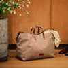 Two inside hanging pockets in the main canvas material, one with a snap button and the other with a zipped pocket allow easy organisation, while handles and an adjustable belt strap running from gusset to gusset offer flexible carrying options depending on mood, style and baggage load.