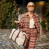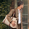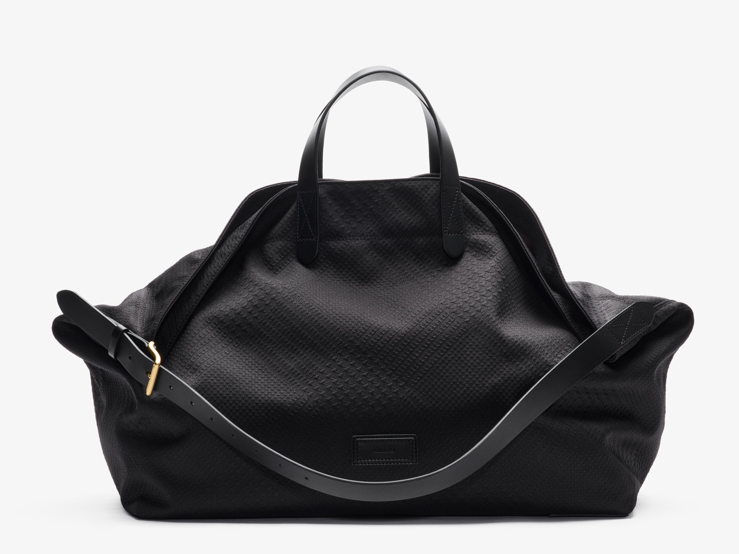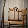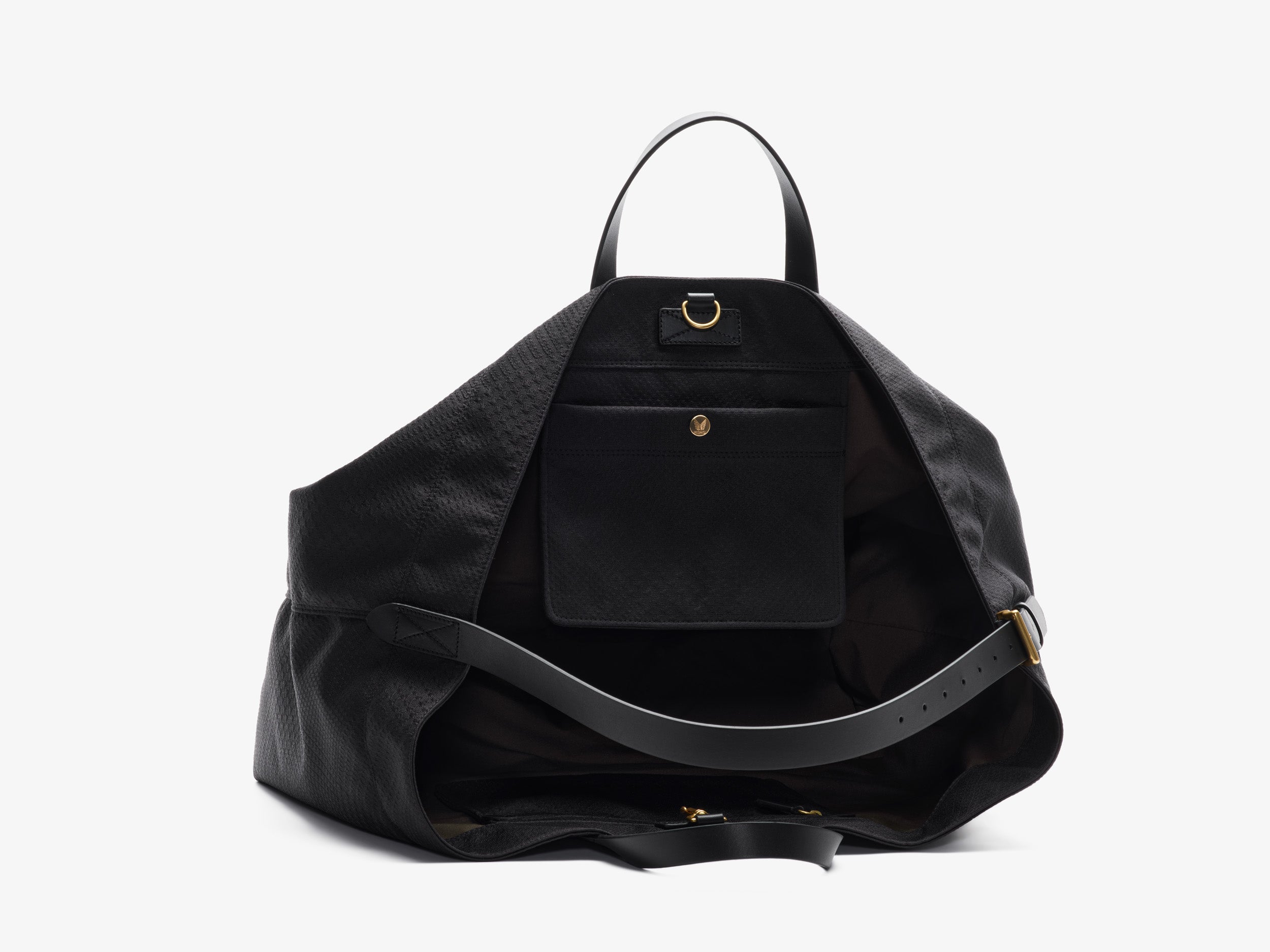 Two inside hanging pockets in the main canvas material, one with a snap button and the other with a zipped pocket allow easy organisation, while handles and an adjustable belt strap running from gusset to gusset offer flexible carrying options depending on mood, style and baggage load.