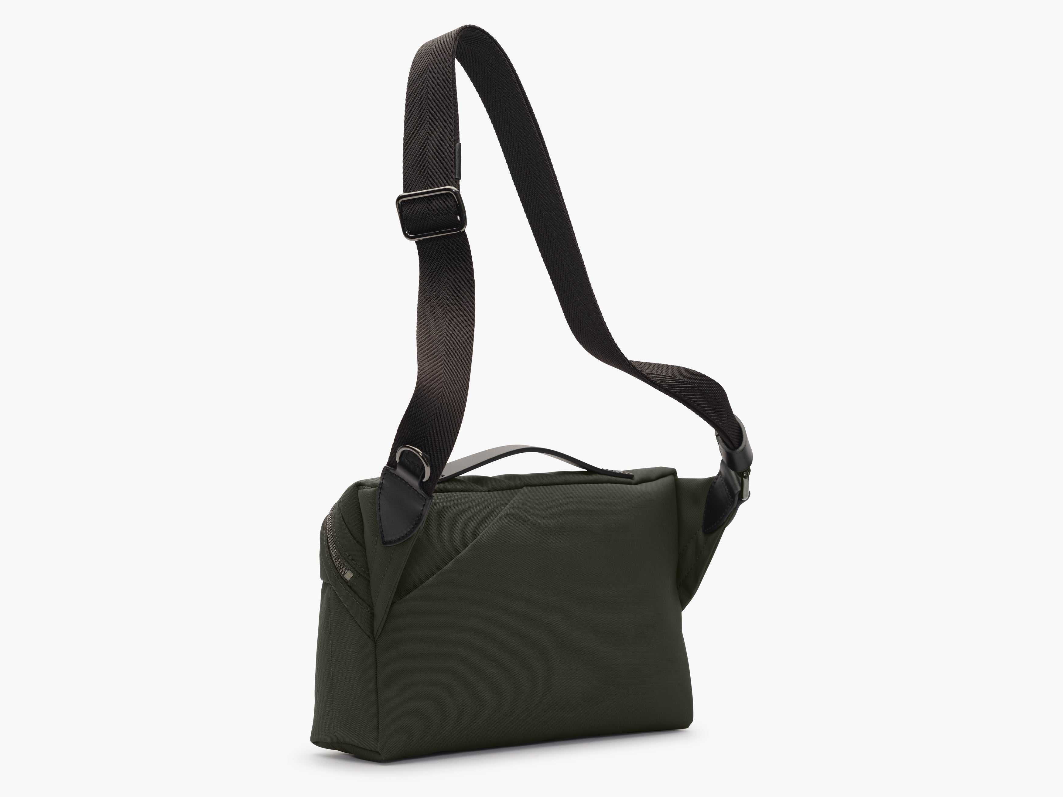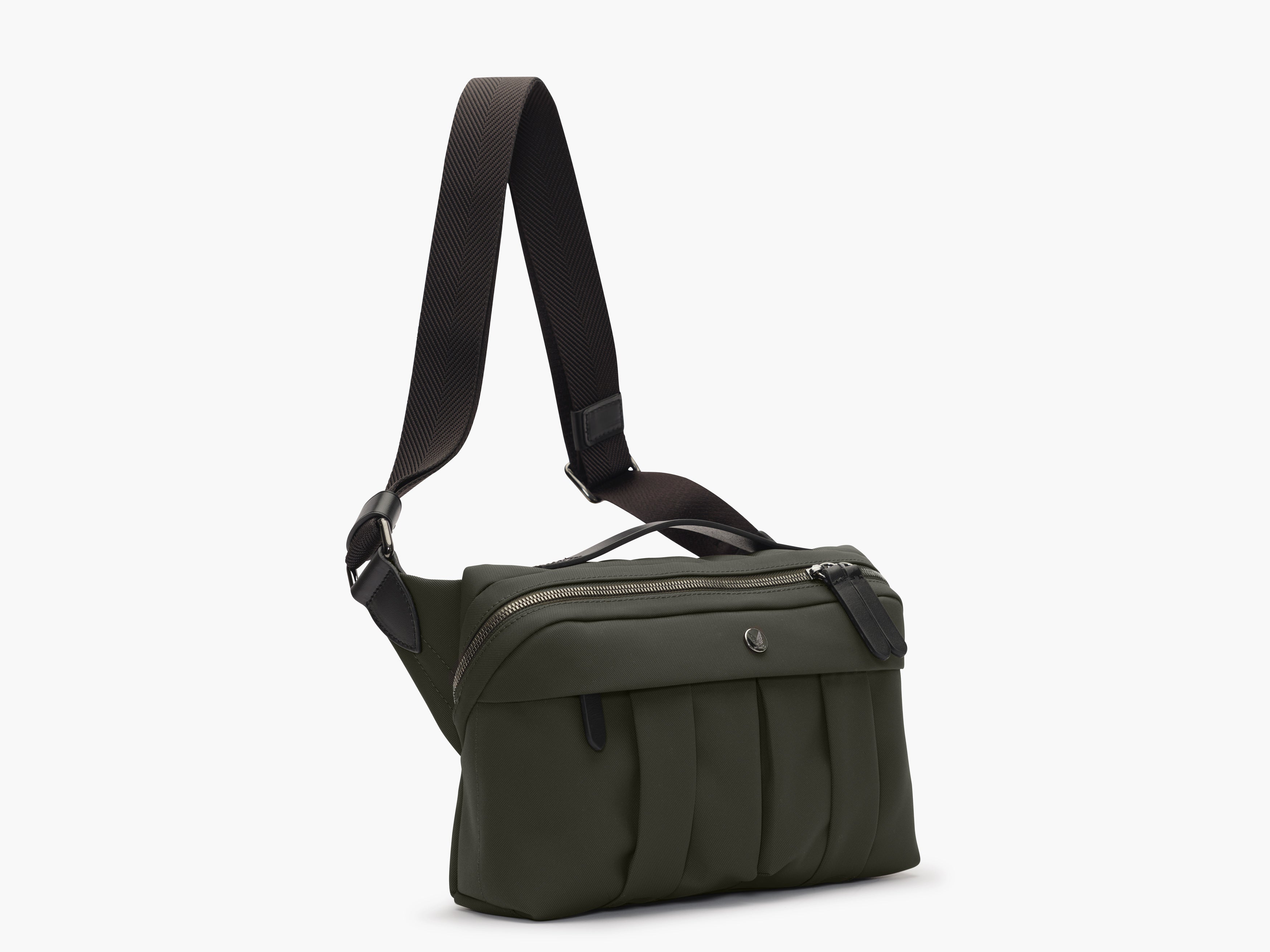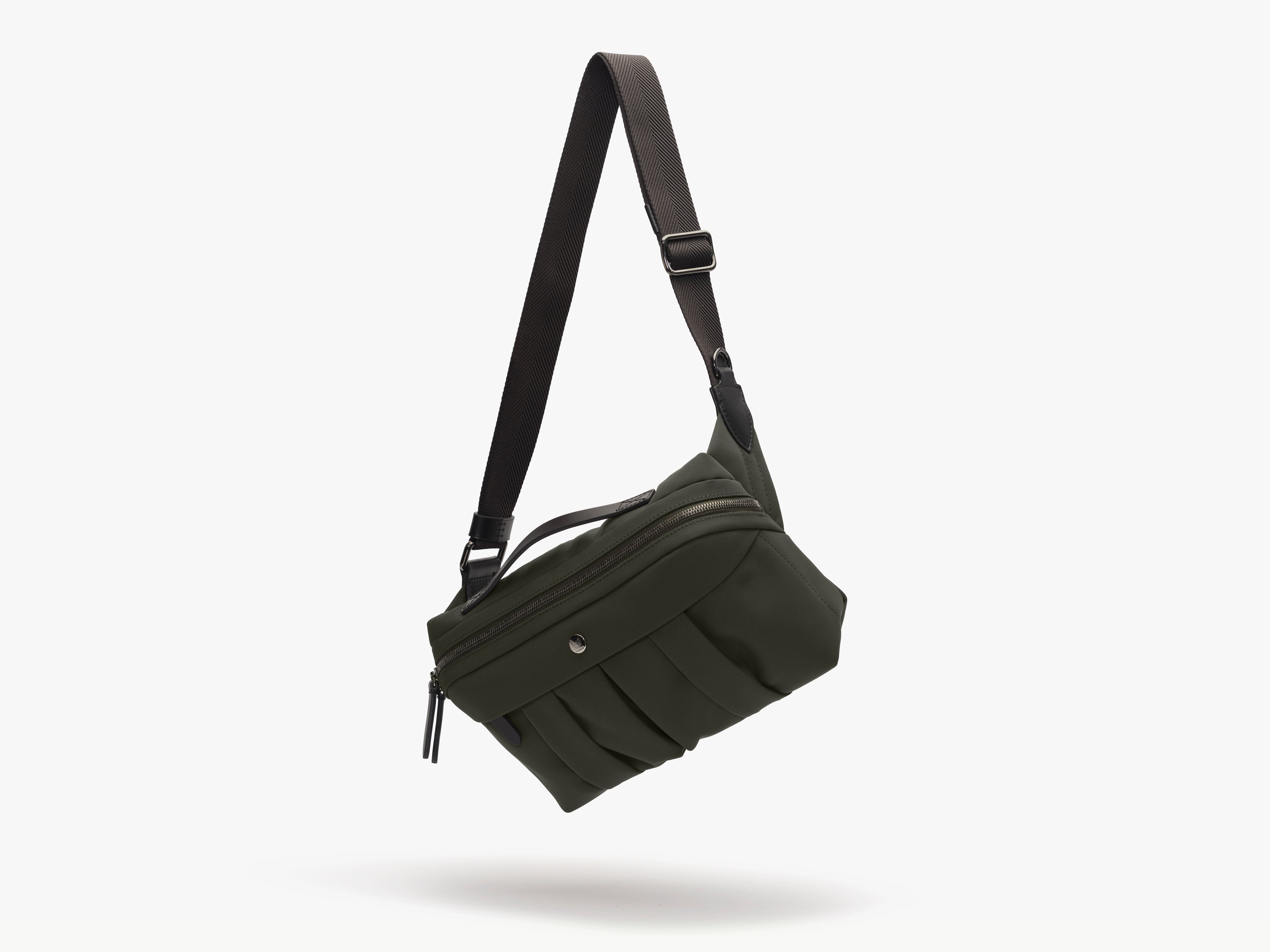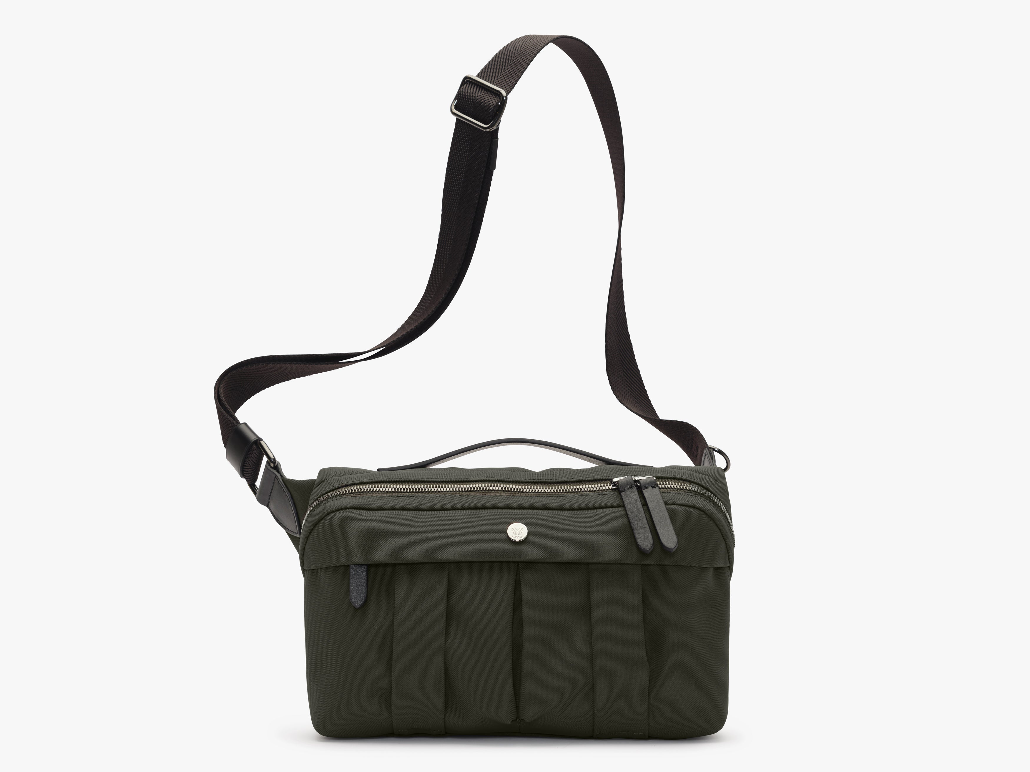 The M/S Passage is purposely designed to keep all those everyday accessories safe and close at hand when on the go. The functional sling bag is fitted with an easily adjustable two-tone nylon ribbon shoulder strap. The main compartment is accessed by a double zip and features two open pockets on the inside back. The outside front holds an additional zipped exterior pocket with pleats for volume, and the outside back offers a large and easily accessible slide-in pocket perfect for a pair of gloves or the hand-knitted beanie. Rounded off with silky smooth tone-in-tone nylon lining and a firm top handle in bridle leather, the bag lets you keep everything within a grab!