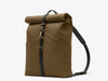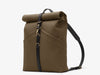 The M/S Rucksack can be flexibly adjusted according to space utilisation by unbuttoning the leather strap and rolling the top flaps together, or by bending the flap down and fasten the sailor hook to one of the four D-rings on the front. The rucksack is designed with two deep and easily accessible open front pockets as well as a zipped exterior rear compartment for magazines, a tablet or an 11” laptop. The inside boasts a padded laptop compartment to the back and a leather zipped pocket to the front with two open slide-down pockets placed below.
