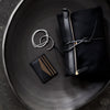 An everyday essential. Cardholder with 3 slots for credit cards on one side and 2 on the other with an open pocket in the middle for bills, notes etc.
