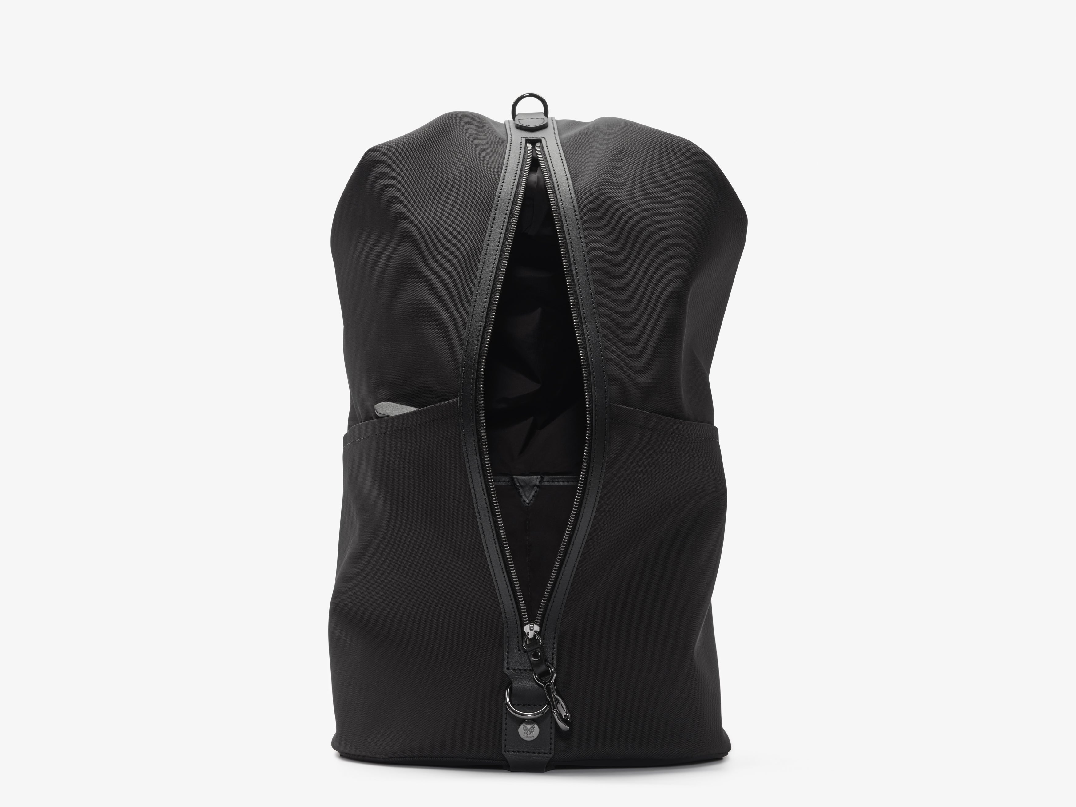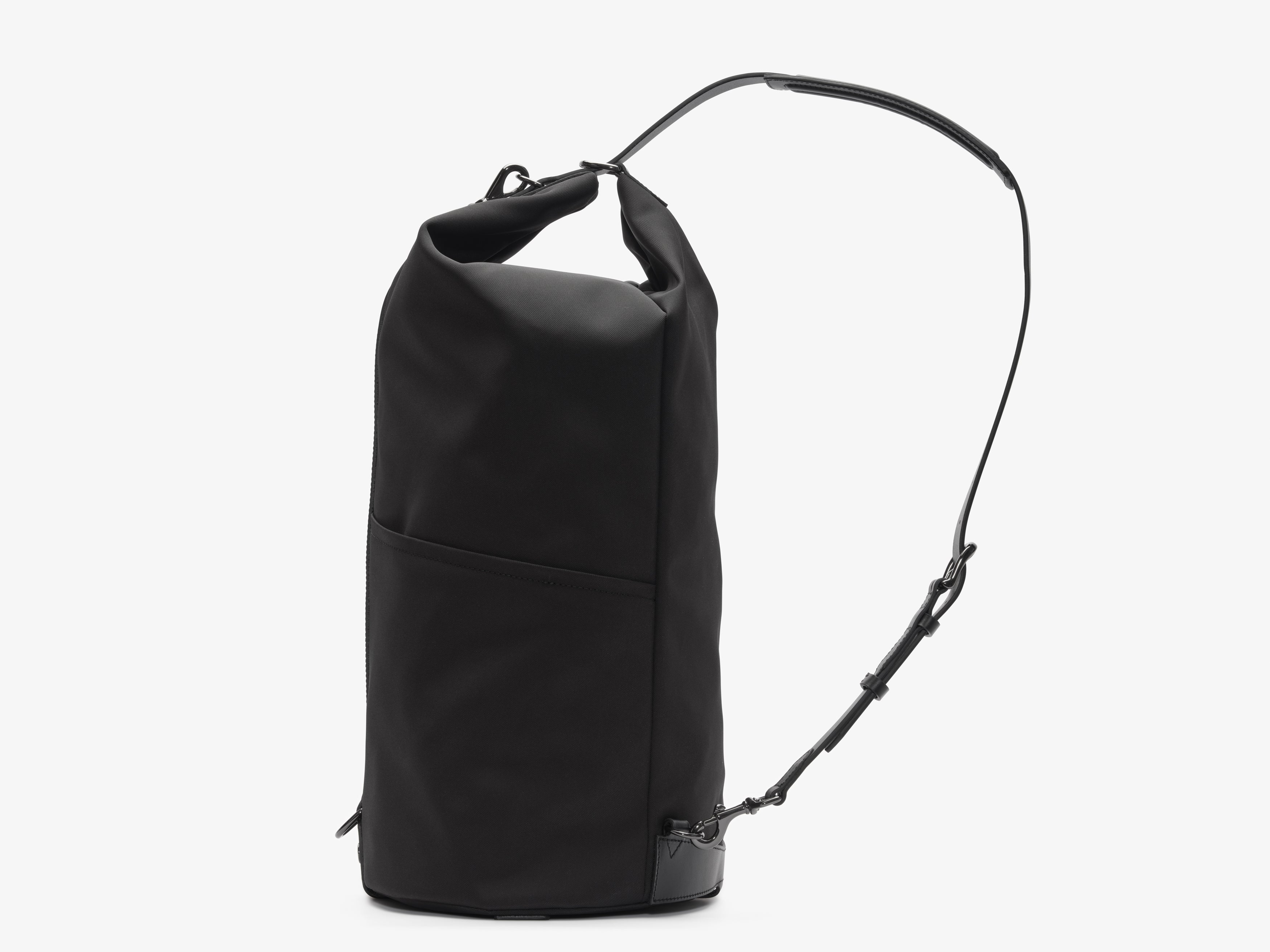 We use recycled (ECONYL®) nylon yarn. It's woven into a tight nylon fabric that still provides a bit of structure to the eye and hand, giving it that element of tactility we seek in all our fabrics. With the fabric being waterproof by nature, it's certain to maintain its clean and stylish appearance for years. A recycled cotton drill backing has been bonded to the outer nylon shell to ensure the right weight & strength of the fabric, ultimately enhancing the durability of the bag.