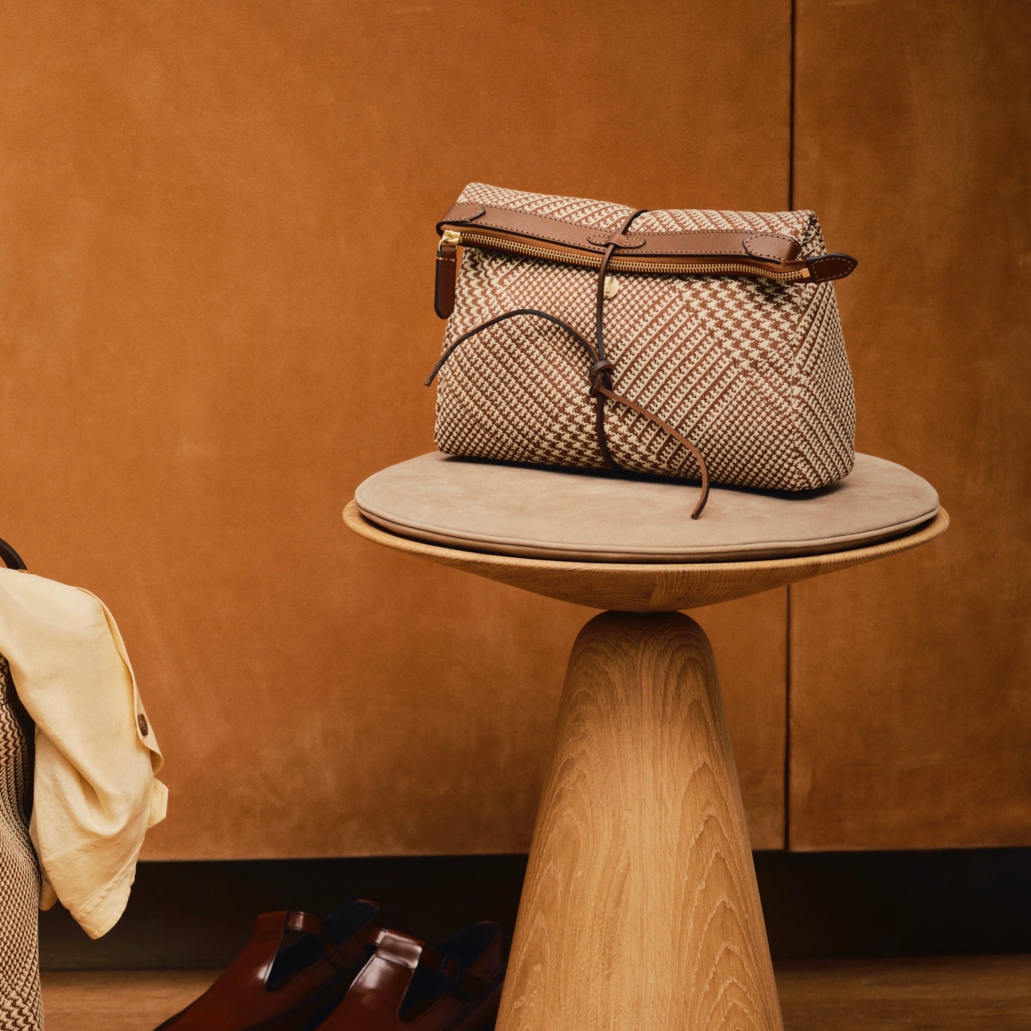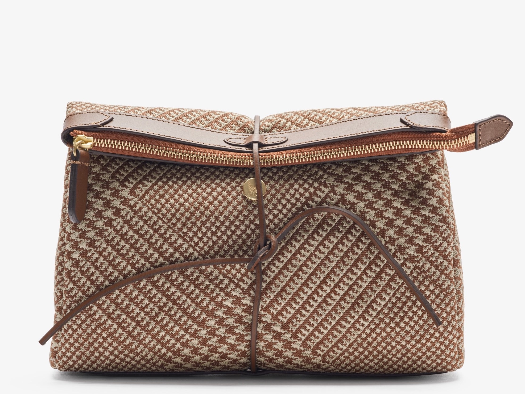 Loose ends belong here. A simple pouch for stationery, tech bits or whatever usually disappears to the bottom of your bag - or a refined clutch for evenings out, carrying night-time essentials with ease. Features two open internal pockets and finished with a leather loop so you can hold it, clip it or hang it as you please.