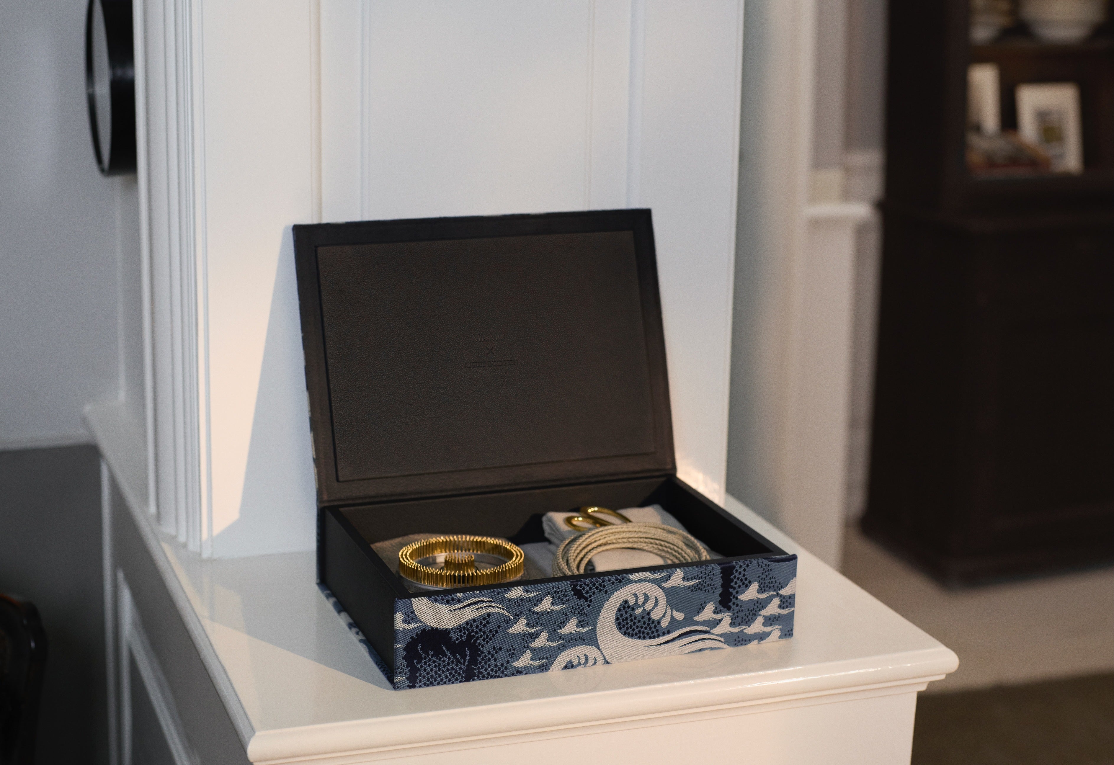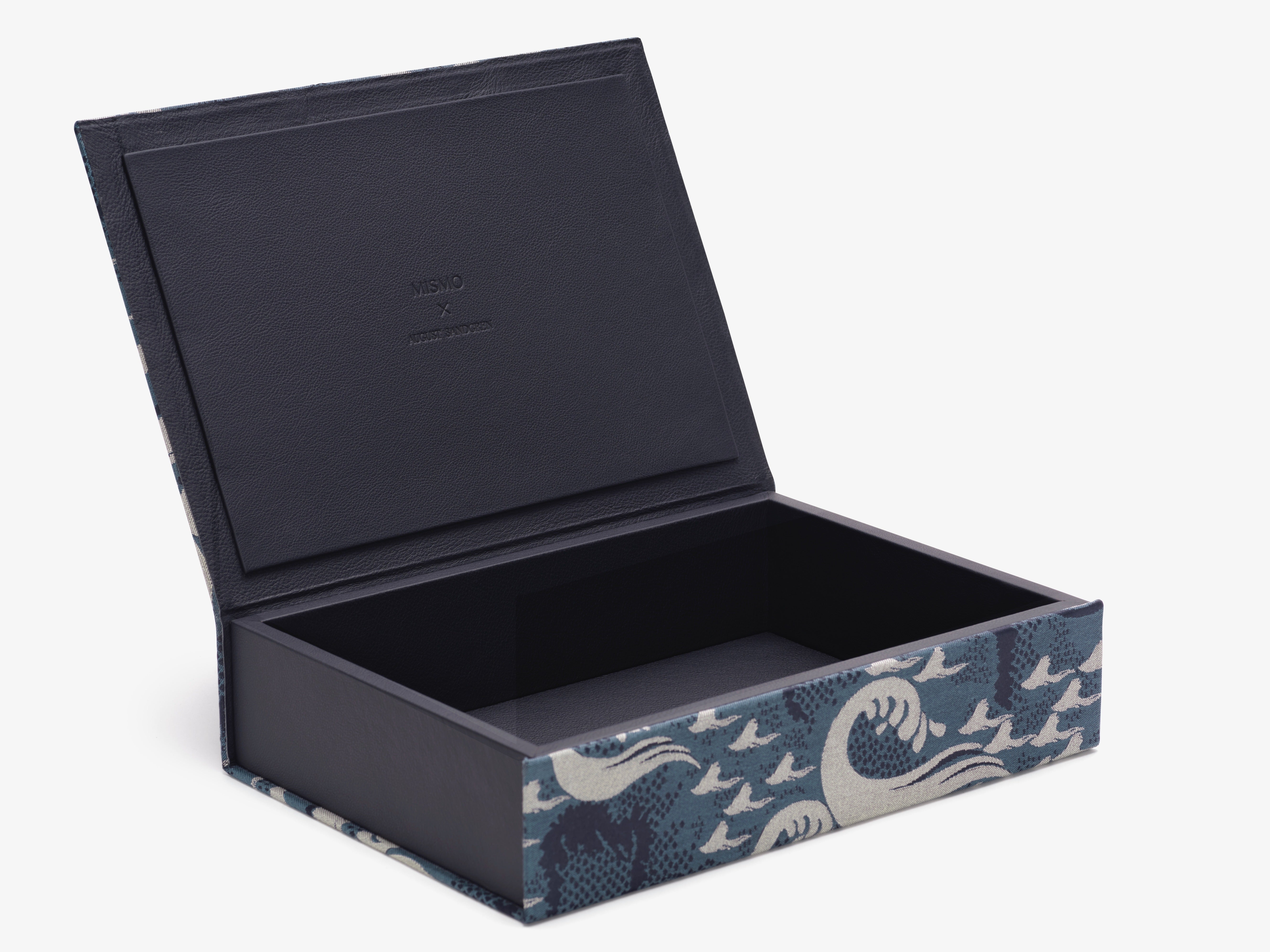 Clad in Mismo’s Ocean Jacquard, the design takes on a more expressive, contemporary character. Inspired by the rhythm and vigour of ocean waves, the pattern draws on Japanese textile traditions, woven in layered shades of ocean blue with off-white cotton wave motifs. Subtle leather details in soft, OekoTex-certified aniline leather from Sørensen Leather add a refined contrast. Durable, structured, and richly textured, it is made to be used, kept, and appreciated over time.