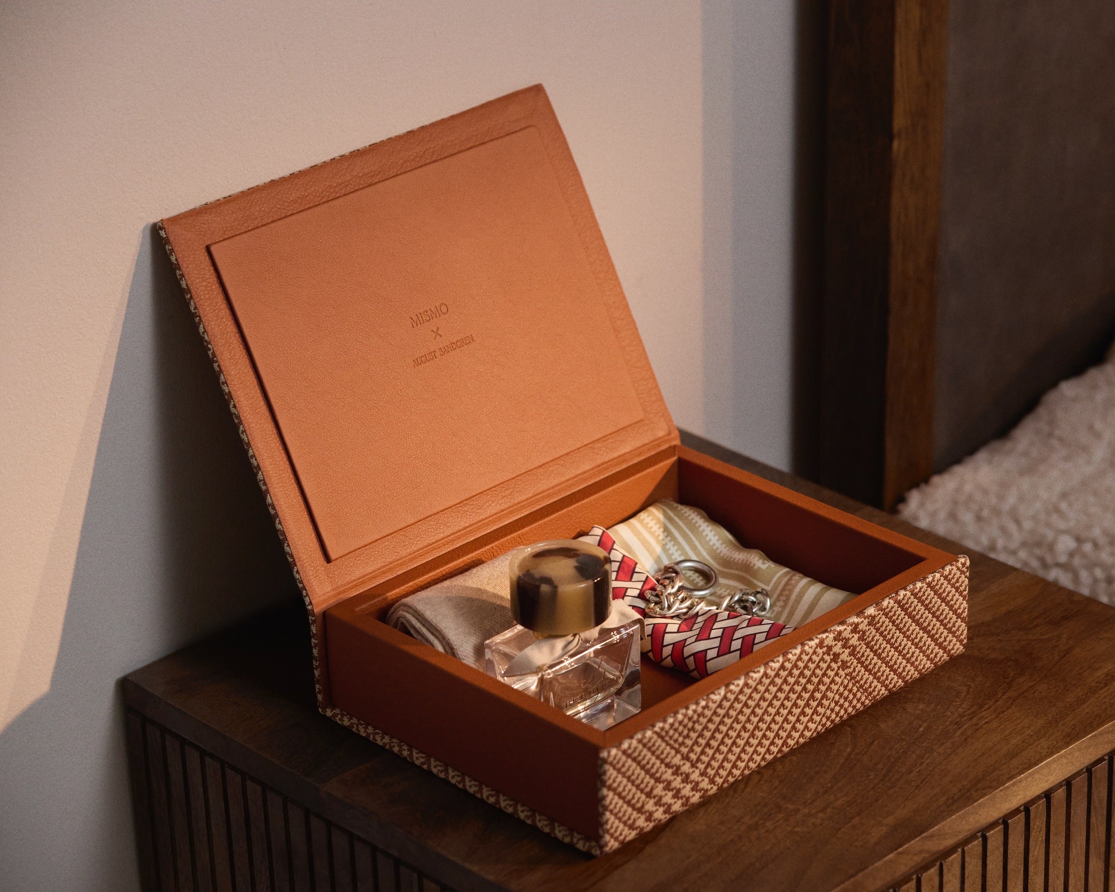 Clad in Mismo’s A Lovely Land jacquard, the design gains a new layer of character. The fabric brings quiet depth and tactility, nodding to tradition while remaining distinctly contemporary. Subtle leather details in soft, OekoTex-certified aniline leather from Sørensen Leather add a refined material contrast. Durable, structured, and richly textured, it is made to be used, kept, and appreciated over time.