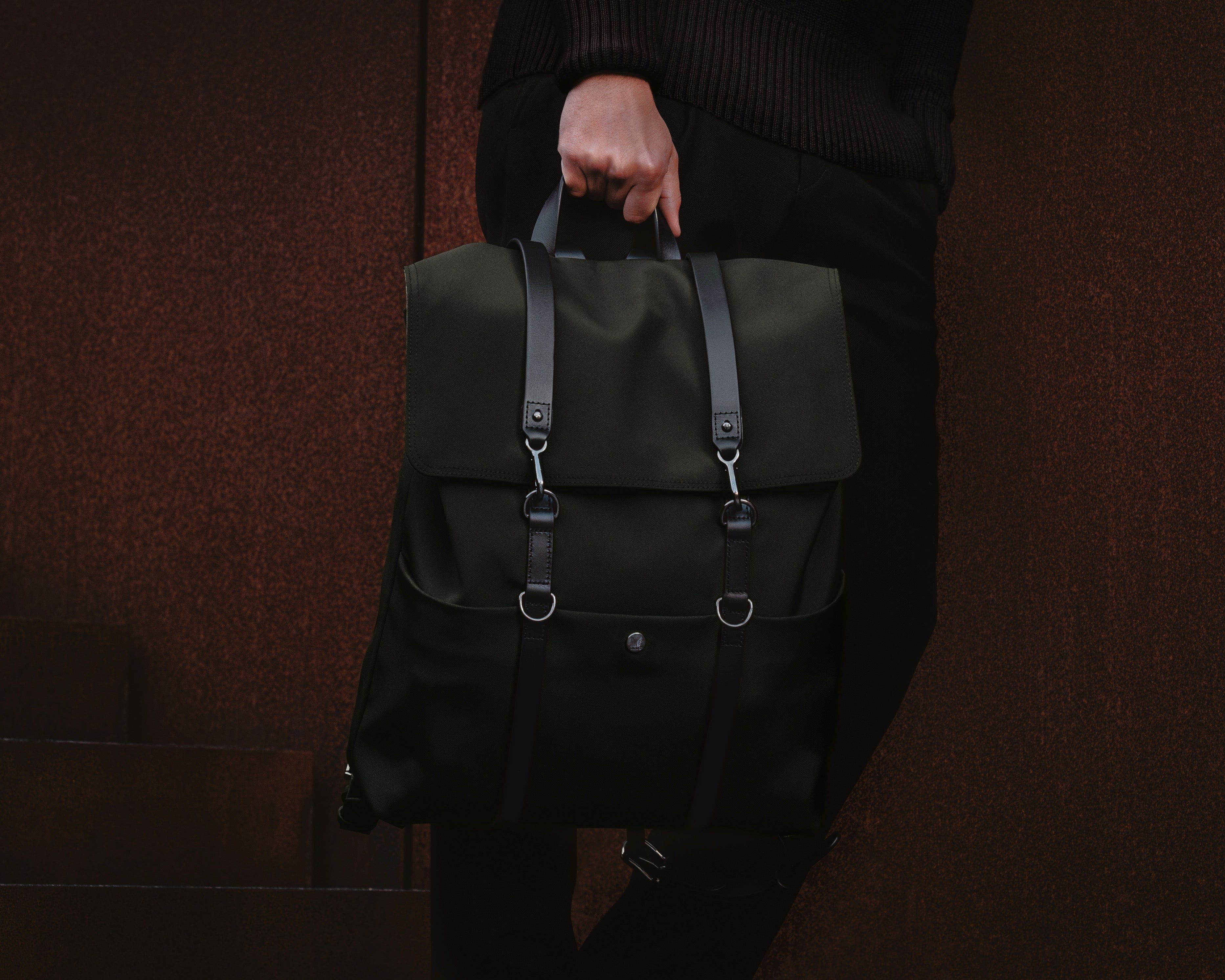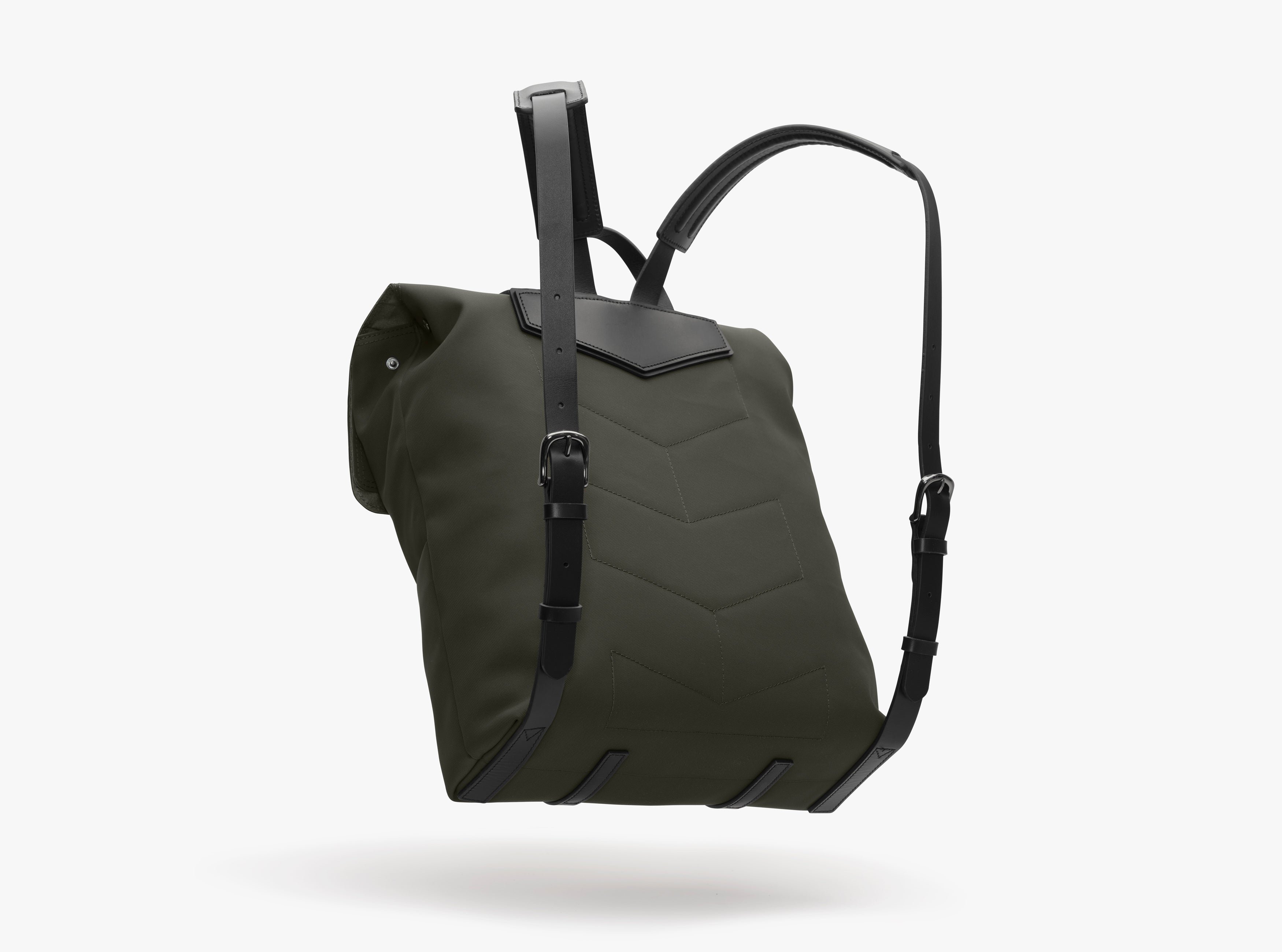 Introduced in Spring 2011 the M/S Backpack has grown to become one of the most iconic and admired styles in our collection. Clean lines and multi-functional, this flexible backpack possesses an obvious Mismo silhouette. Roll the top flaps together for a casual look, or simply bend down the flaps for a more traditional and clean look. Four pairs of D-rings on the front body ensure the bag can be closed in various positions depending on how much of the bag’s internal volume is utilised.