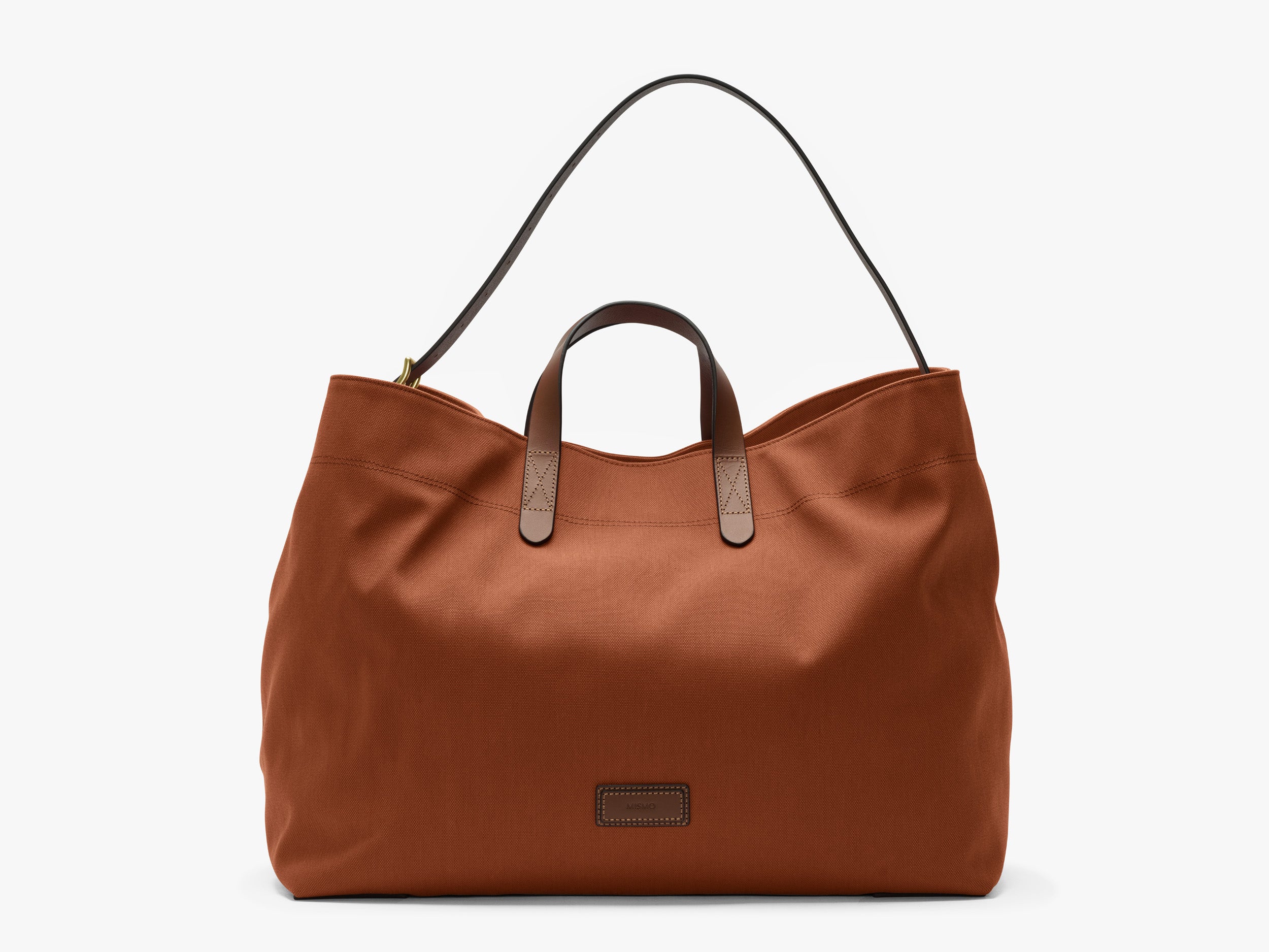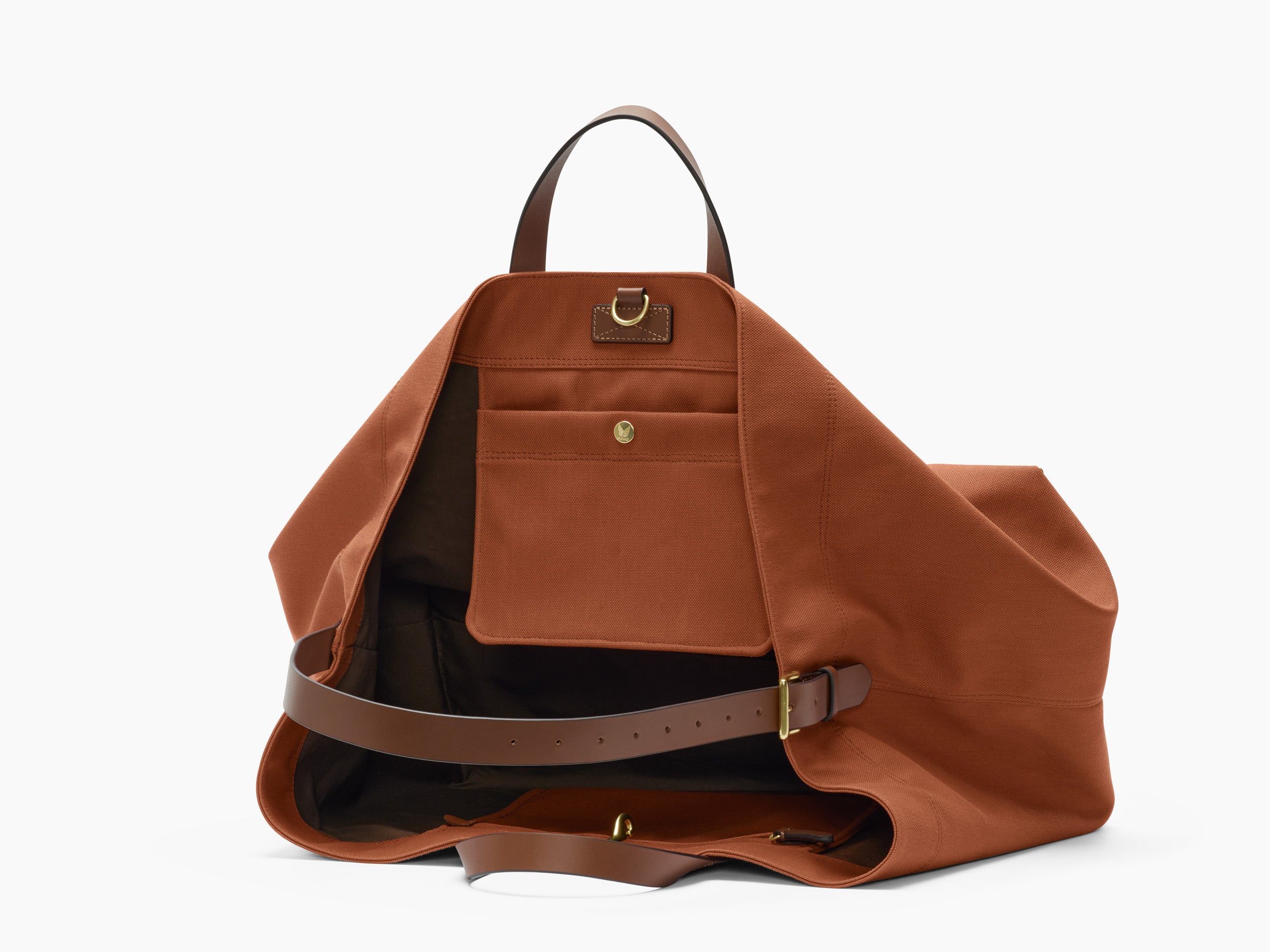 Two inside hanging pockets in the main canvas material, one with a snap button and the other with a zipped pocket allow easy organisation, while handles and an adjustable belt strap running from gusset to gusset offer flexible carrying options depending on mood, style and baggage load.
